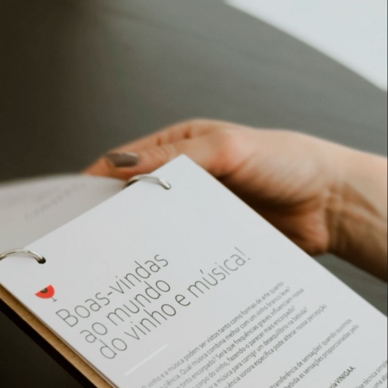 Criado para acompanhar cada taça, o Guia de Degustação Viniqaa apresenta um método simples e intuitivo para analisar vinhos. Um material essencial para quem deseja degustar e compreender as harmonizações entre vinho e música com embasamento.